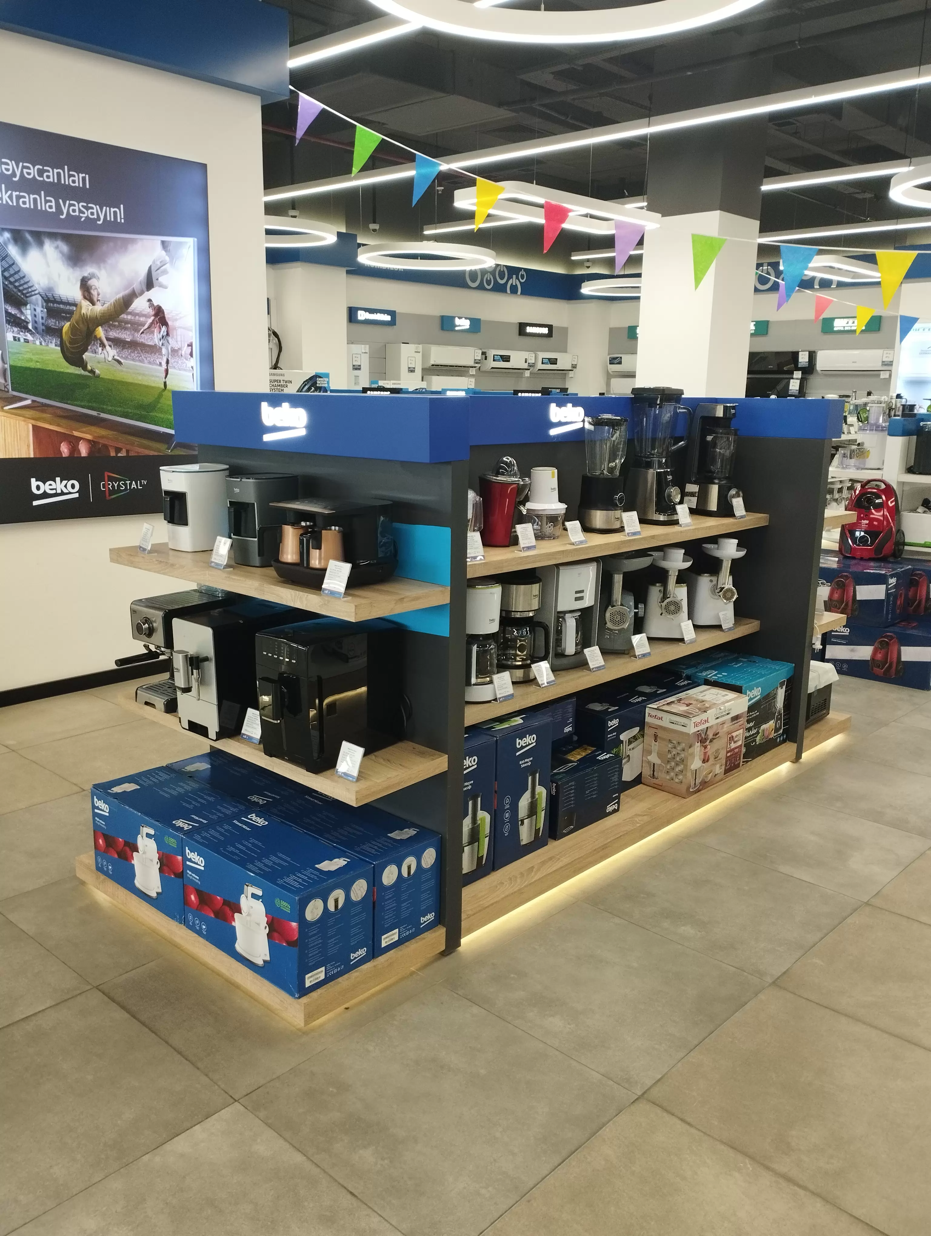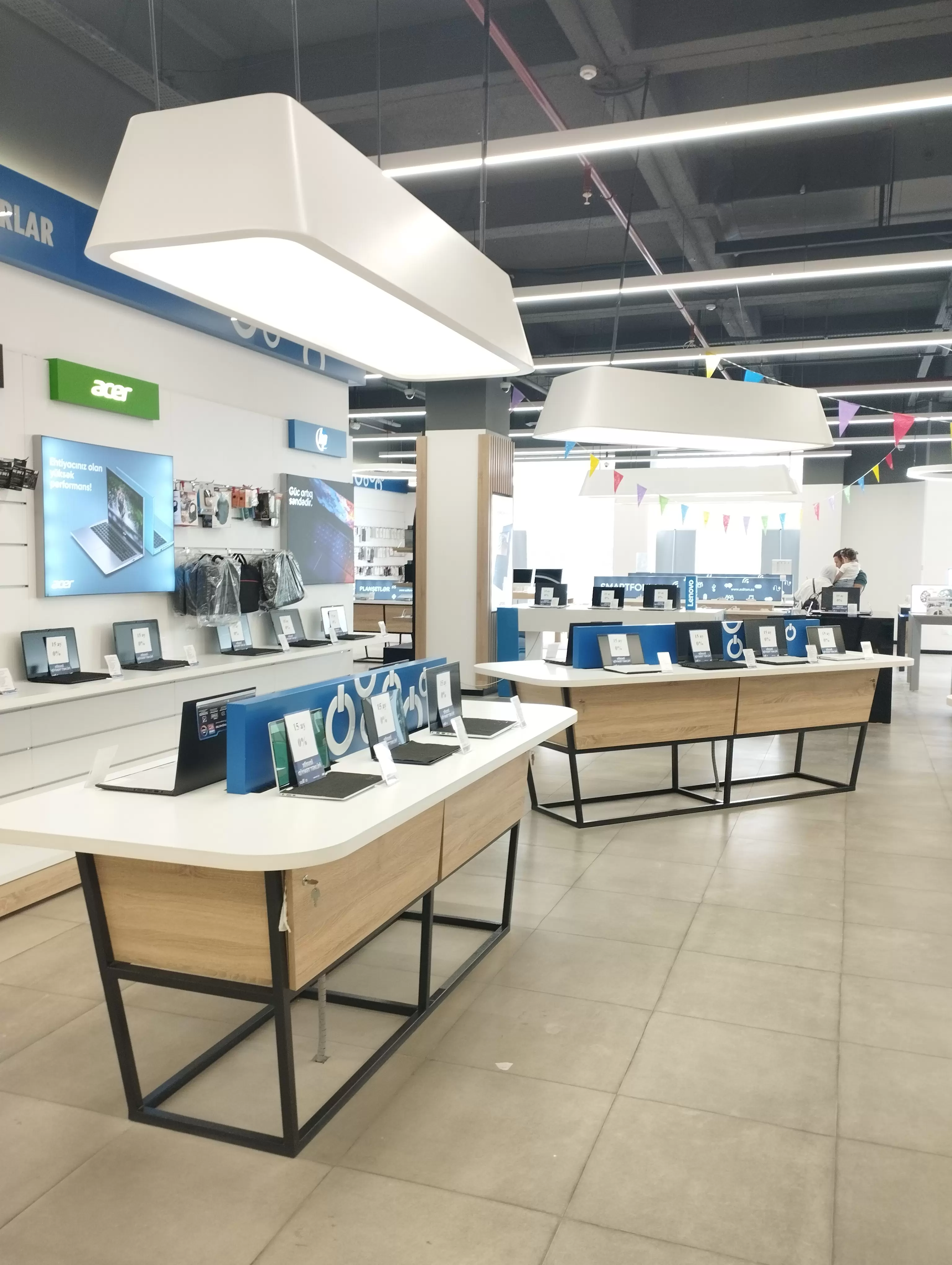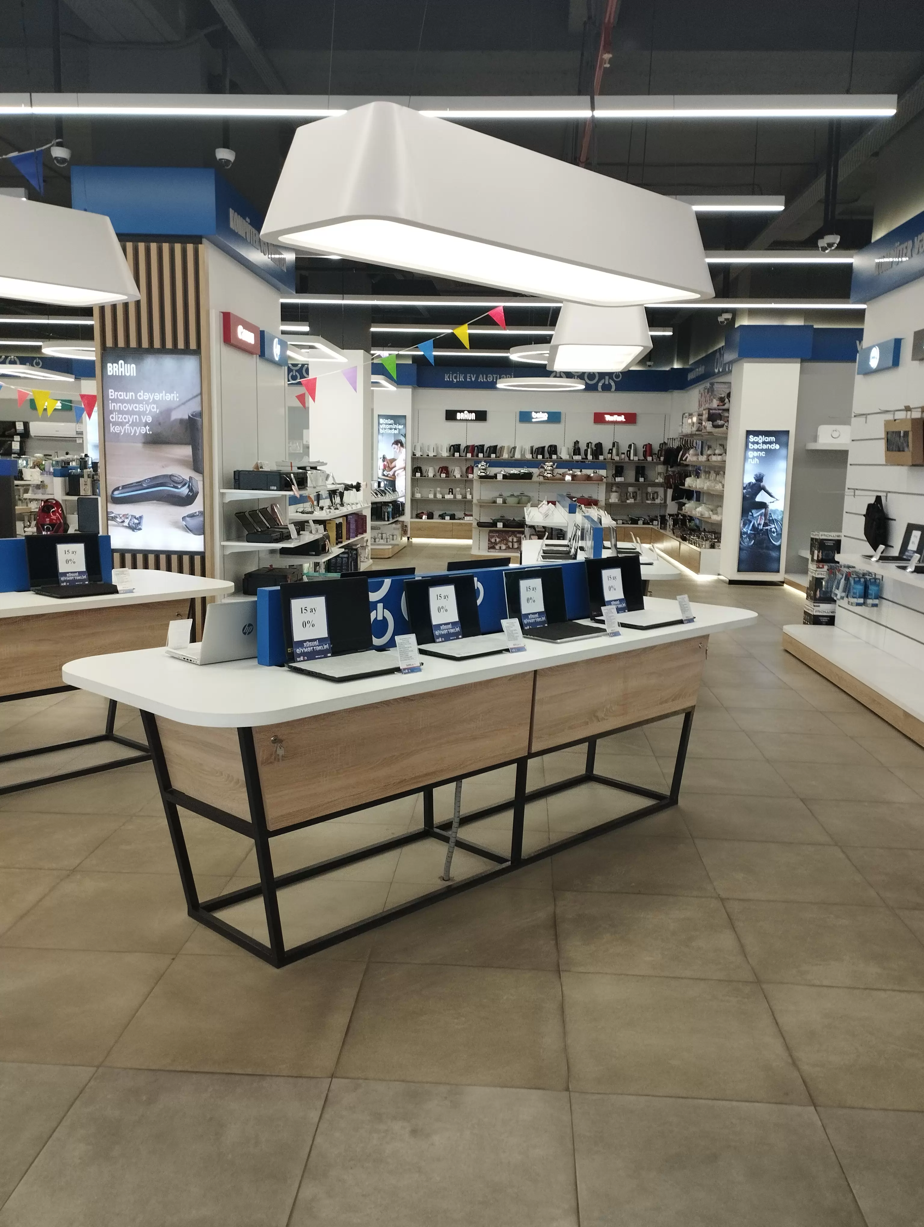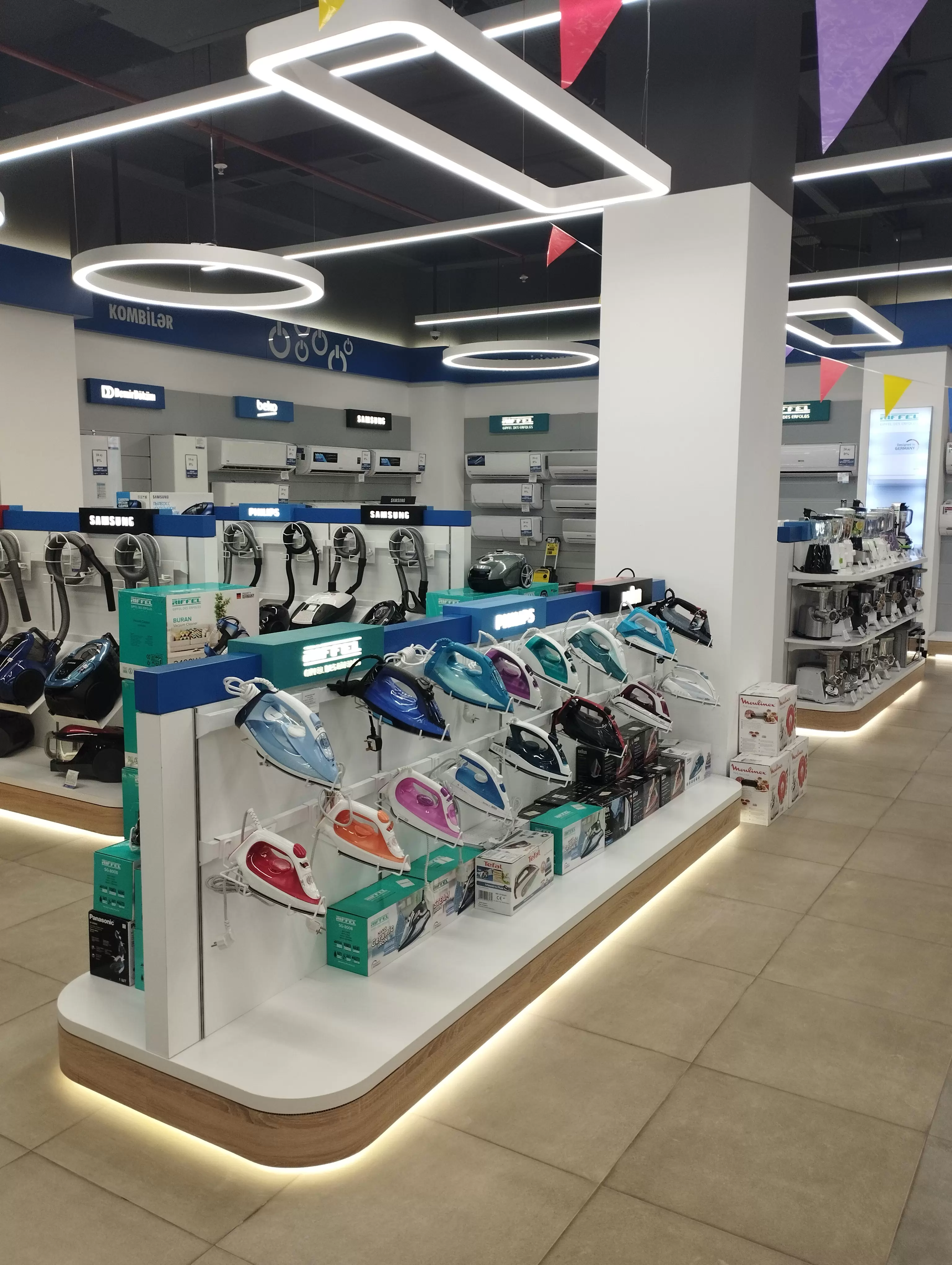 На основе нашего сотрудничества с Soliton, которая является одной из крупнейших компаний в стране по продаже электронной продукции, мы выполнили работы по проектированию, производству и монтажу их магазина Sumgait Flagman, который является крупнейшим магазином в компания. 850 кв.м. площадь была завершена и полностью сдана в короткие сроки. В магазине есть разнообразные товарные стенды, витрины, стойки регистрации, стеклянные стойки ресепшн, внутренняя реклама (объемные буквы, световые рекламные короба с текстильной печатью), потолочный масштабный логотип, системы освещения и специально разработанное потолочное освещение. зонты и др. производство и монтаж изделий осуществлялись нами. При производстве использовалась сварка металла, ламинированная плита МДФ, окрашенный МДФ, световые системы, привезенные специально из Турции, рекламные короба из профильных систем и т.д.